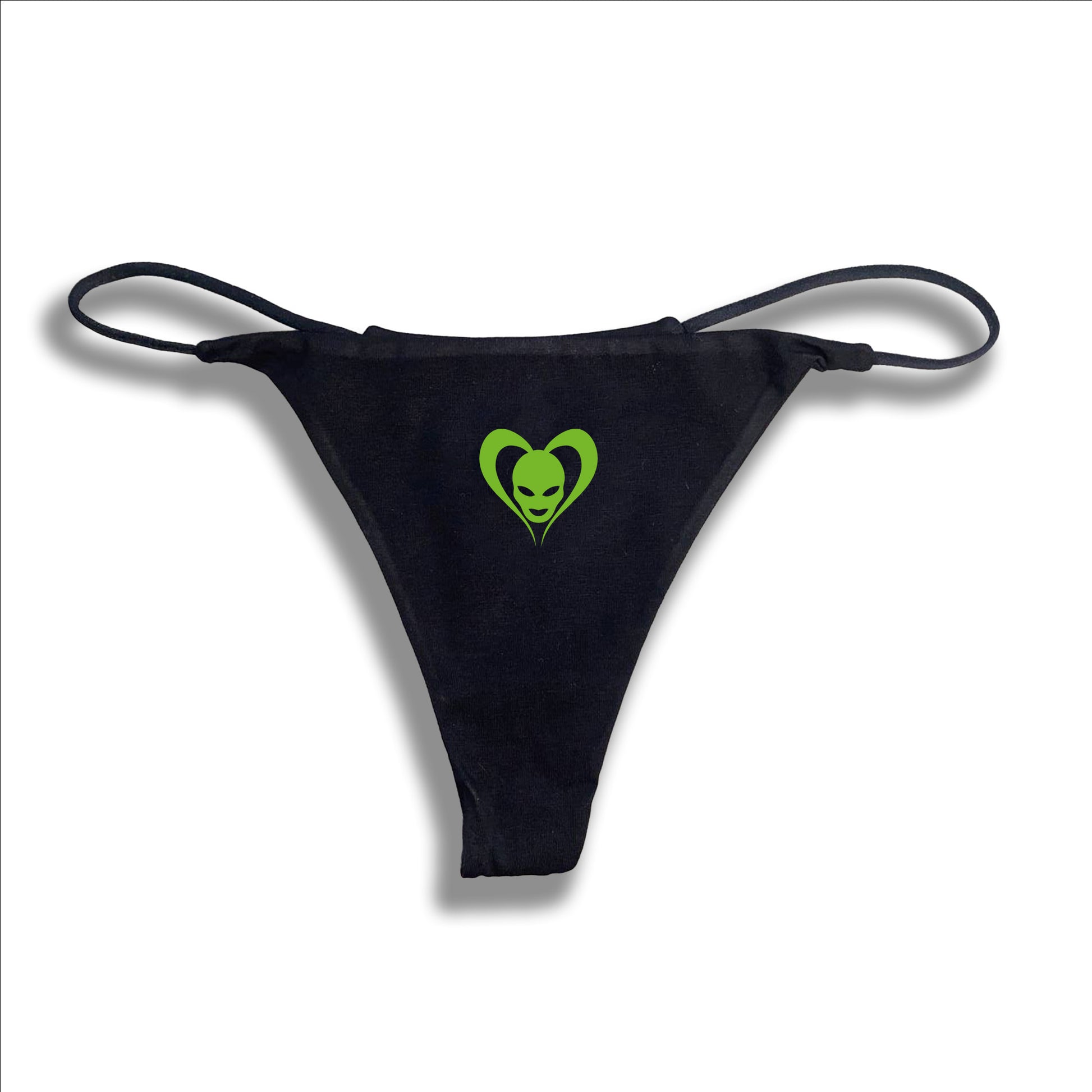 Sexy schwarzer Tanga aus 100% Baumwolle mit Herz-Logo vorne und Schnörkel-Logo hinten.